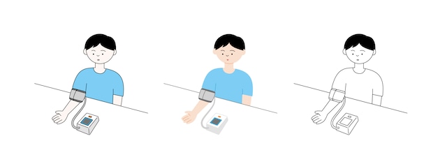 血圧を測る若い男性