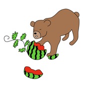 スイカ畑を荒らすクマ