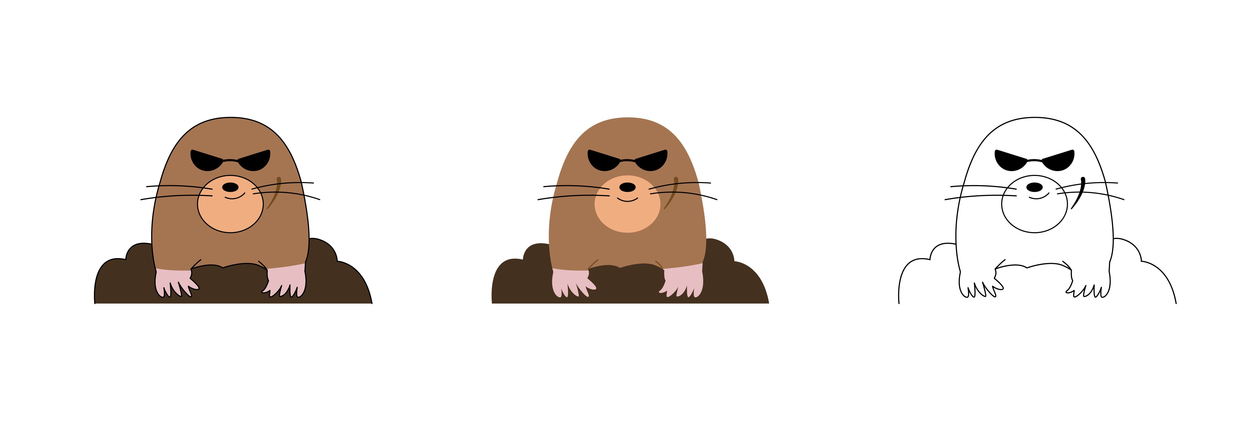 サングラスを着用した悪役風のモグラを、カラーと線画のバリエーションで描いたイラスト素材セットです。土の中から顔を出している様子をフラットなデザインで表現しました。害獣被害、庭のトラブル、地中の生き物に関するコンテンツに最適です。Webサイトのバナー、ブログのアイキャッチ、SNS投稿、チラシやプレゼン資料のワンポイントなど、コミカルで印象的なアイコンとして幅広くご活用いただけます。