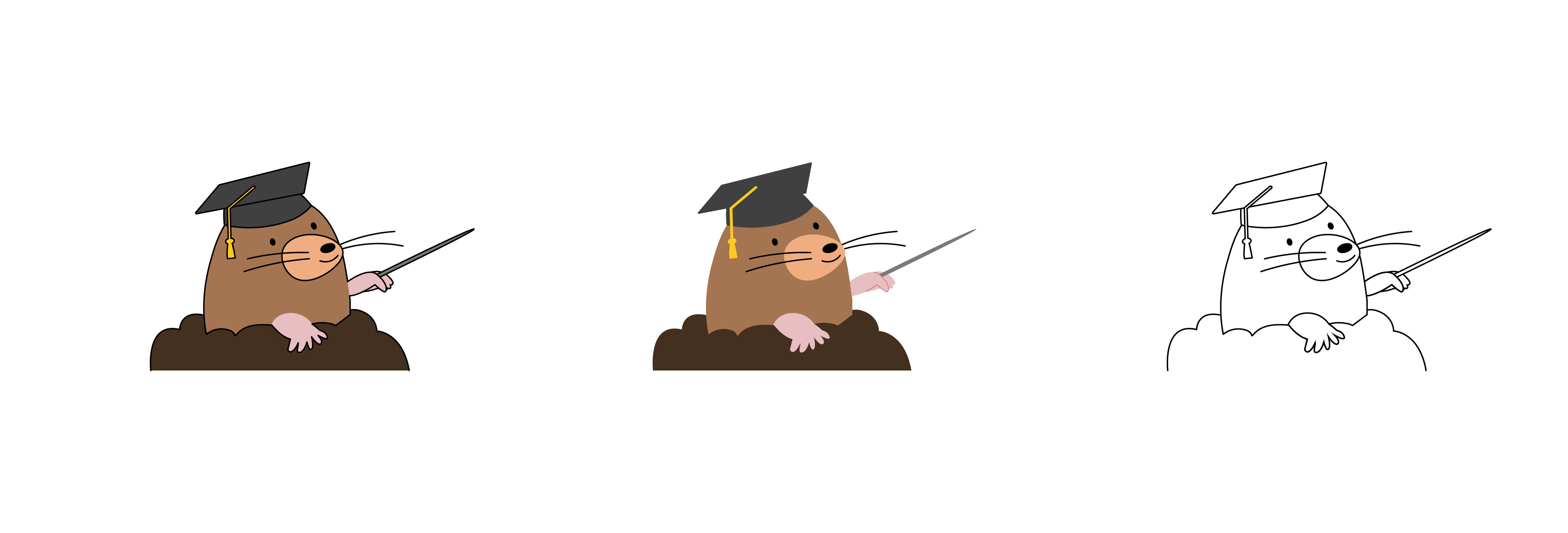 角帽を被り、指示棒を手にした先生風のモグラを、カラーと線画のバリエーションで描いたイラスト素材セットです。土の中から顔を出して解説している様子をフラットなデザインで表現しました。教育、学習、セミナー、豆知識の紹介など、何かを説明・案内するシーンに最適です。Webサイトの解説バナー、ブログのアイキャッチ、SNS投稿、教育用スライドやチラシのワンポイントとして、親しみやすいナビゲーター役に活用いただけます。
