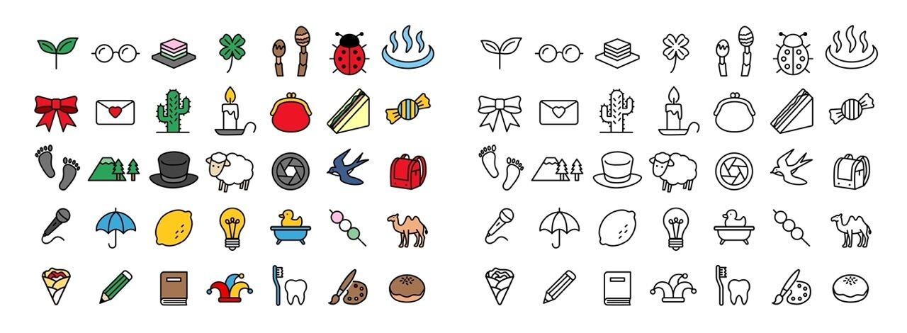 3月や春の季節感をテーマにした、シンプルで使い勝手の良いアイコンセットです。植物(つくし、クローバー)、食べ物(菱餅、サンドイッチ、団子)、日用品(眼鏡、財布、文房具)など、幅広いジャンルのモチーフを網羅しています。線画のみのスタイルと、親しみやすいカラーリングを施した2つのパターンを収録。広告デザイン、Webサイトのバナー、カレンダーの装飾、チラシのワンポイントなど、様々な媒体で多目的に活用いただけます。