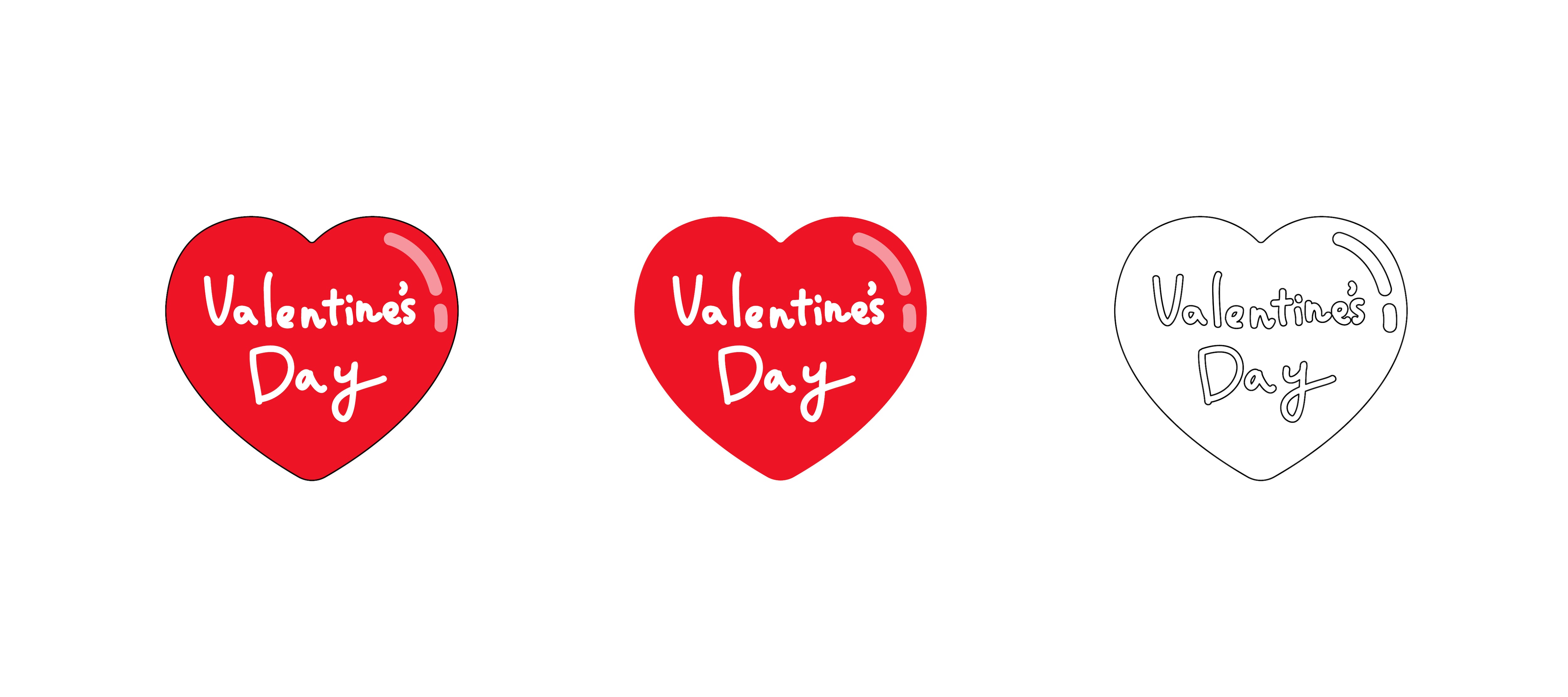 赤を基調とした、バレンタインデーに最適なハート型メッセージプレートのイラストセットです。塗り、主線なし、線画の3パターンを収録しており、用途に合わせてデザインを選択できます。アイシングクッキーのような柔らかな質感と手書き風의フォントが、可愛らしく温かみのある雰囲気を演出します。2月14日のイベント告知、ECサイトのギフト特集、SNS投稿、店頭POPなど、バレンタイン関連の広告やWebデザインのアクセントとして幅広くご活用いただけます。
