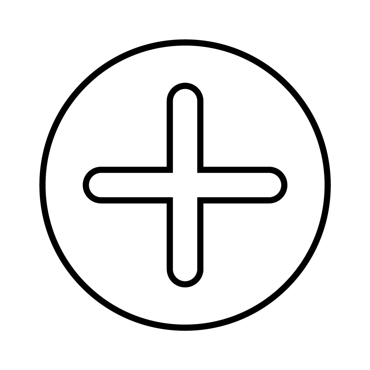 日曜大工やDIY、修理作業を象徴するプラスネジ(ネジ頭)のシンプルな線画イラスト素材です。モノクロのアウトラインデザインで、視認性が高く、マニュアルの図解やウェブサイトのメンテナンスページ、ホームセンターの販促物など、幅広い媒体でご活用いただけます。ネジ、ねじ、プラスネジ、ビス、工具、道具、こうぐ、どうぐ、Screw, Phillips head, DIY, Repair。白背景に孤立しているため、加工や配置も容易です。