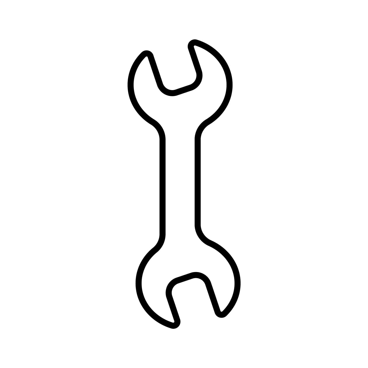 メンテナンスや修理を象徴する、シンプルなスパナ(レンチ)の線画アイコン素材です。工具、道具、こうぐ、スパナ、すぱな、レンチ、れんち、wrench、toolといった表記ゆれに対応。WEBサイトの設定画面、DIYのハウツー広告、自動車整備のパンフレット、工場の安全管理資料など、幅広いビジネスシーンやデザインに最適です。白黒のミニマルなデザインなので、他の要素を邪魔せず直感的に情報を伝えます。