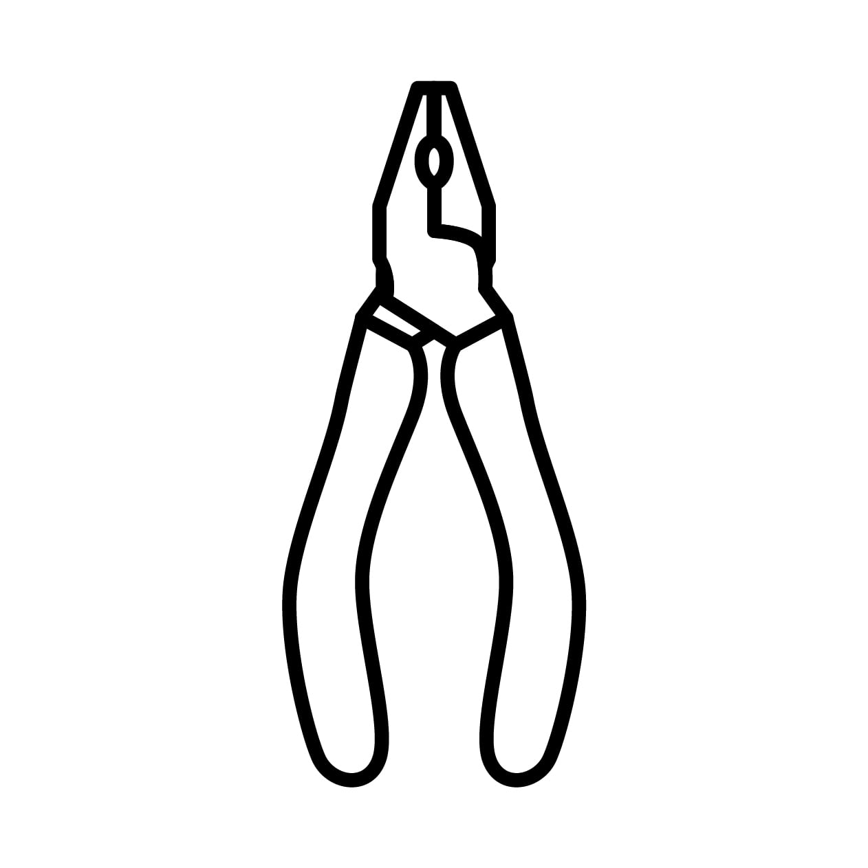 日曜大工やプロの現場で欠かせないペンチ(pliers)のシンプルな線画イラスト素材です。DIY、修理、メンテナンス、電気工事などのテーマに最適で、ウェブサイトのアイコンや広告、取扱説明書などの挿絵として幅広く活用いただけます。ペンチ、ぺんち、Pliersといった表記ゆれに対応し、日本語と英語の両方で検索されやすい構成です。白背景に黒の主線を用いたミニマルなデザインで、清潔感と視認性を両立しています。