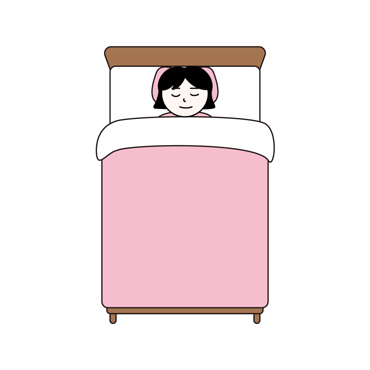 ベッドで安眠する女性を描いたフラットなイラスト素材です。ピンクの布団、線画のみ、塗りなしなど、用途に合わせて使いやすい3つのバリエーションをセットにしました。睡眠の質、快眠、安眠、健康管理をテーマにしたWebサイトやブログ、広告、パンフレットに最適です。ねる、ねむる、スリープ、sleepといった表記ゆれにも対応。一人暮らしのライフスタイルや、寝具販売の販促用バナー、医療・ヘルスケア系のコラム記事にも幅広く活用いただけます。
