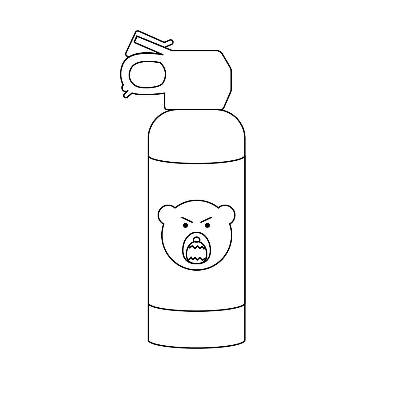 「熊よけスプレー(ベアスプレー)」のイラストを、カラー・モノクロ線画・主線なし(フラット)の3つのバリエーションでまとめました。用途や媒体のデザインに合わせて最適なスタイルを選べる便利な素材です。登山の安全ガイド、野生動物の対策パンフレット、アウトドア用品のECサイトなど、様々なシーンで一貫性のあるビジュアルを提供します。クマ被害防止のための注意喚起や教育資料の作成にぜひご活用ください。